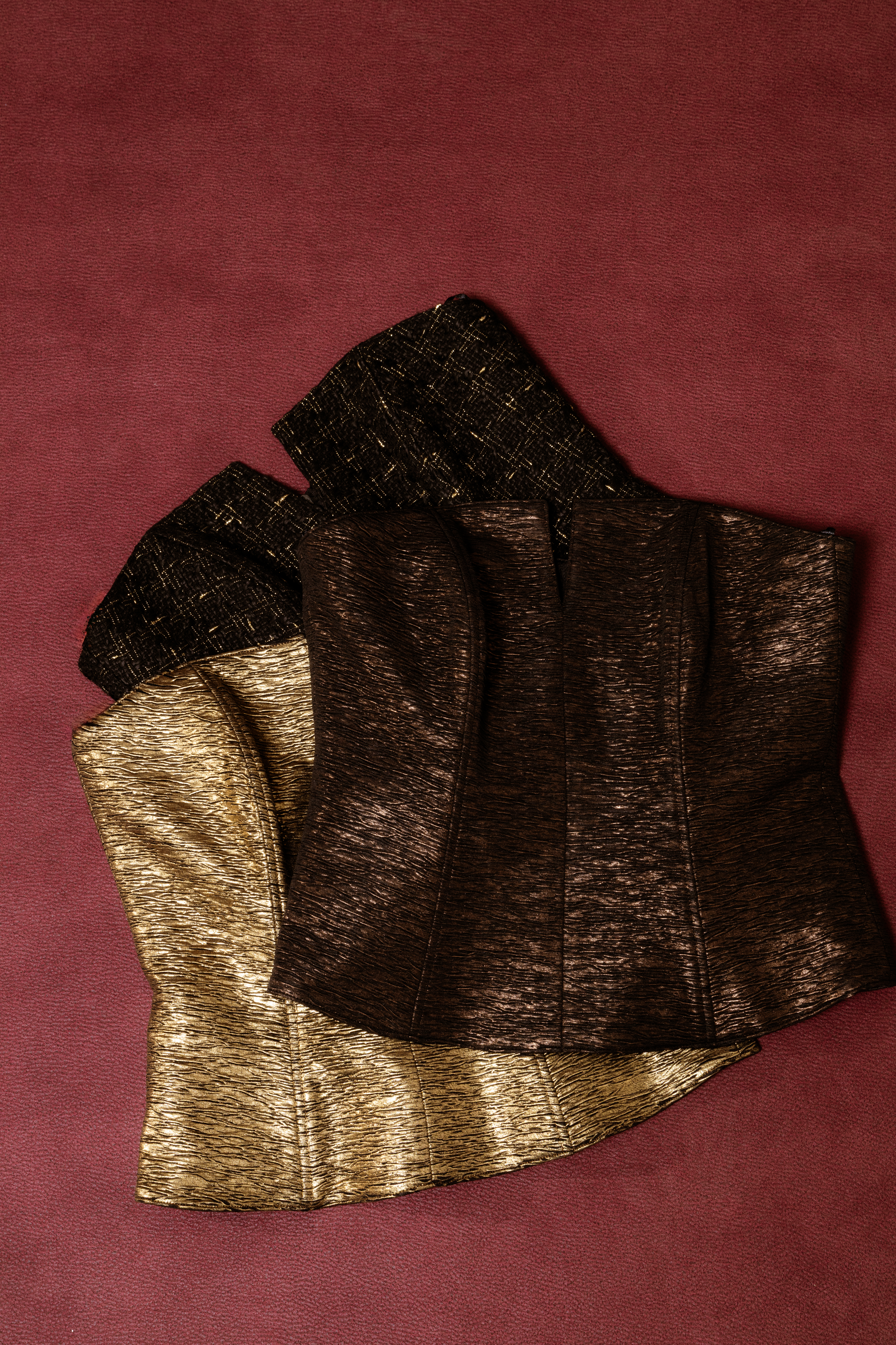 A beautifully tailored corset designed to enhance the silhouette with a refined, structured fit. Available in brown, gold, and black for effortless statement styling.